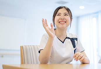 患者さんが笑顔を見せてくださったり、無事に退院できた時にはまだまだできることが少ない自分でも役に立てたのかなとやりがいを感じます。また、レクリエーションなどを通して楽しんでもらえる姿を見ると、また次も頑張ろうと思えます。
